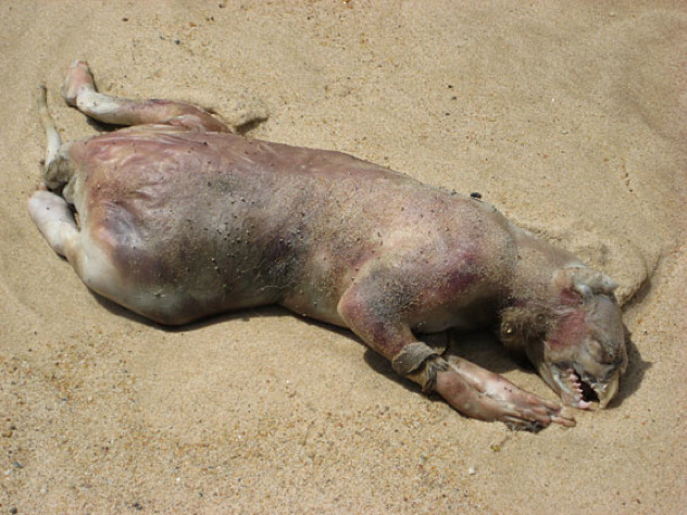 - 24 Ένα άγνωστο νεκρό ζώο ξεβράστηκε στην παραλία San Diego το 2012.